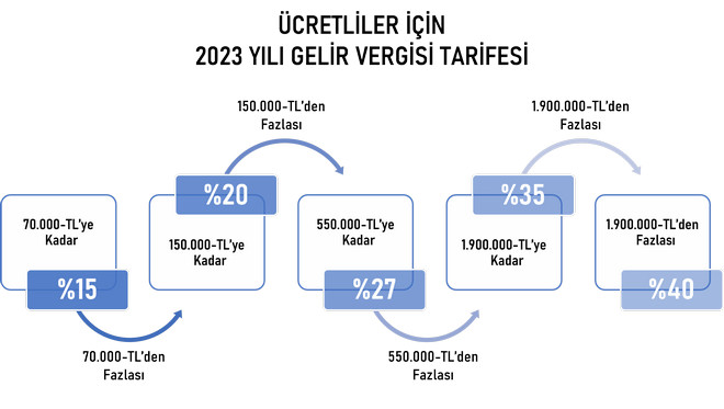2023 Yılı Ücretliler İçin Gelir Vergisi Tarifesi (Dilimleri)
