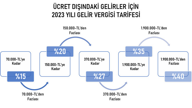 2023 Yılı Ücret Dışındaki Gelirler İçin Gelir Vergisi Tarifesi (Dilimleri)